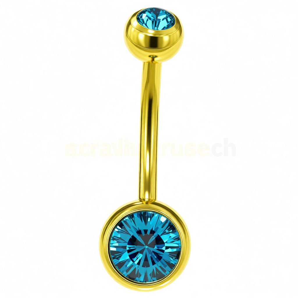 Пирсинг пупка с двумя камнями 8мм. под золото (цвет: голубой)